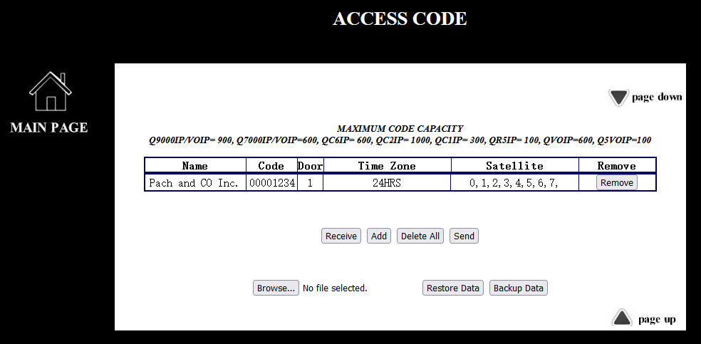 Sending the access codes database to Telephone Entry System |