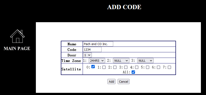 | [Time Zone] three different time zones can be assigned to each access code. See Time Zone setting. 24HRS means the access code will work 24/7. | ||